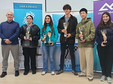 La joven promesa del ajedrez mallorquín, el palmesano Dominguez se impuso a Junhao Chen, 2° clasificado, en un final de torneo muy disputado, mientras que Veloz quedo por delante de Mireia Baldó, 2°, y María Maimo 3°, con un juego que denostro el buen nivel del ajedrez mallorquín femenino.