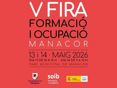Las empresas y entidades interesadas en participar con un puesto y ofrecer puestos de trabajo pueden presentar su solicitud a través del registro general. El plazo máximo es el 27 de abril. La V Feria de Formación y Empleo está organizada por el Departamento de Promoción Económica y Desarrollo Local del Ayuntamiento de Manacor, en el marco del programa SOIB Desarrollo Local 2026-2027.